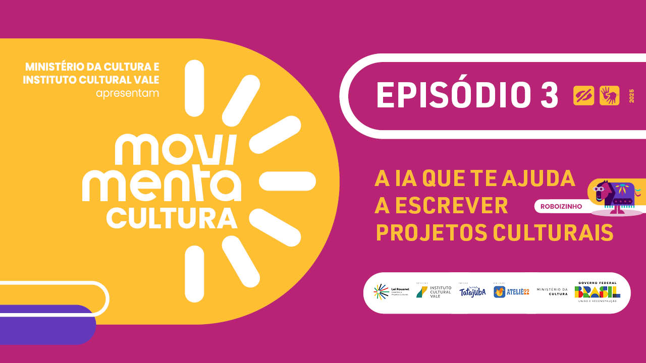 Transforme seu projeto cultural em realidade! Conheça o Ciclo de Formação Movimenta Cultura, que oferece conteúdos e ferramentas facilitadoras para elaboração de projetos culturais para a Lei Rouanet.